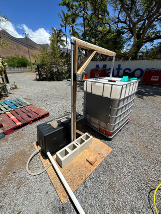 This is a good time to start talking about dish pits as well, as this was the first attempt at what would become an on-going passion project of mine to build the perfect dish pit. A dish pit is... a pit in which one does the dishes. For us, this means it has to be big because we have a lot of dishes to clean which are also large dishes. In Maui, I created the first iteration of what I envisioned. This was a platform that would collect the run off, and then the runoff would go into a macerator pump and into a gray water holding tank that would be pumped out everyday. This worked pretty well, but it was only the beginning of my dish-pit journey.