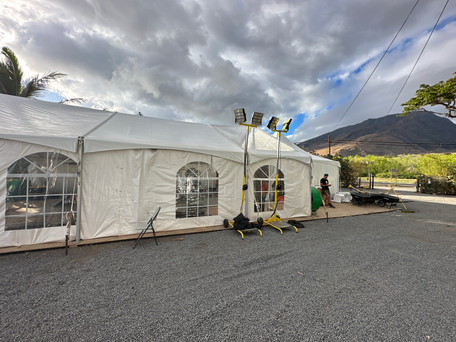One day after I got home from Greece I left for Hawaii. The wildfire in Maui ripped through a small coastal town called Lahaina. I was there the next day and as always we started with sandwiches, fruit, and waters. The project evolved over time though. Initially we partnered with a local organization and community college that were also providing food and then after their participation ended or evolved, we went on to build our own kitchen. In addition to managing the purchasing and movement of all our product, I'm also responsible for our kitchen build outs. We found a campsite that was about 10 minutes from Lahaina, and we rented the whole facility, built our kitchen there, and lived there. In total we were there for about 6 weeks.