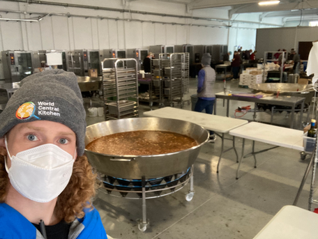 2022 The day after the start of the Ukraine war, we started serving meals to the refugees coming across the border into Poland. We established what was our largest kitchen to date in a warehouse where we were cooking tens of thousands of meals per day. This was in a beautiful small town called Przemyśl near the border. We stayed at a hotel that was formerly a castle, which we called The Castle. At The Castle there was a dog that we called Dog. Dog had a fun tom and jerry-like relationship with the security guard who was always chasing him away. I became good friends with Dog. He would wait for me when I got home and would come and stay with me in my hotel room. Of course, this was purely transactional for him because I fed him, but for me it was nice company, especially when I got COVID and had to stay quarantined in my room (and roam The Castle grounds) for two weeks.